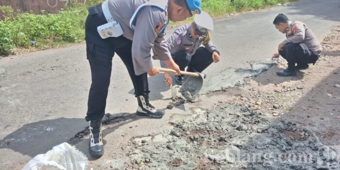 Polisi Turun Tangan Tambal Jalan Berlubang, Warga Apresiasi Polsek Genteng Banyuwangi