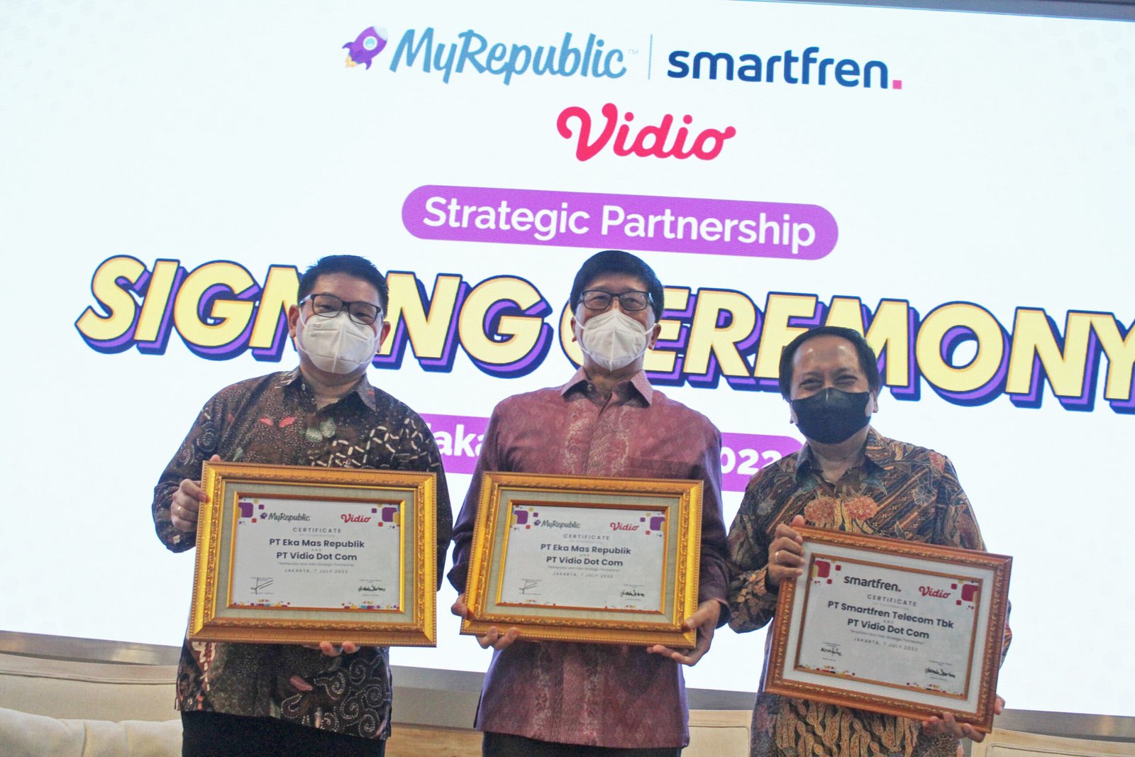 Chief Executive Officer Vidio, Sutanto Hartono menjelaskan “Kerjasama yang terjalin antara Vidio dengan Myrepublic dan Smartfren, merupakan bentuk komitmen Vidio untuk melakukan ekspansi, sekaligus distribusi konten melalui jaringan strategis demi meningkatkan kualitas layanan kepada pelanggan. Dengan adanya kerja sama ini, pelanggan dapat mengakses berbagai konten yang ada di Vidio dengan mudah.”
