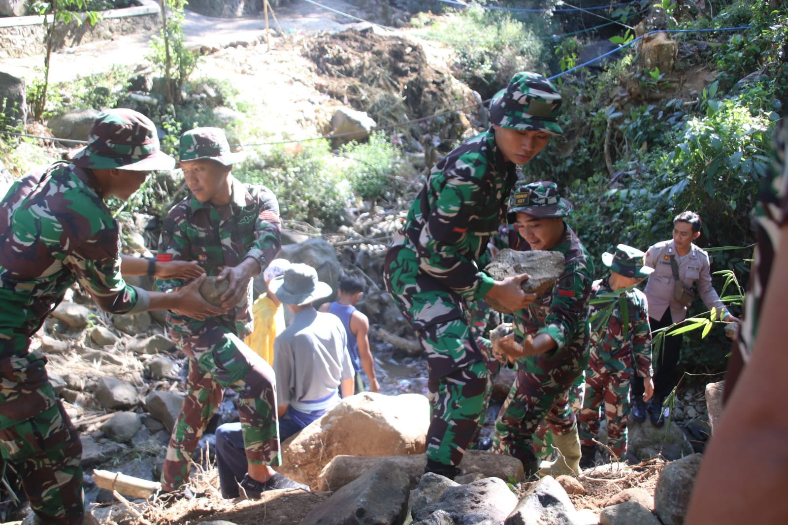 Pengamatan di lapangan, warga bersama Satgas secara intensif bergotong-royong membawa material batu yang dibutuhkan untuk pengerjaan sasaran fisik, meski harus mengangkat dari bawah secara manual, namun tidak mematahkan semangat mereka untuk saling membantu.