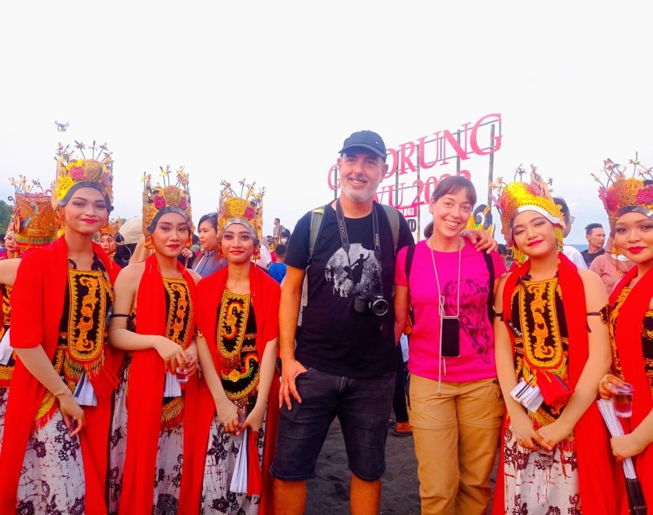 Banyuwangi, seblang.com – Festival Gandrung Sewu memang menarik perhatian, sampai-sampai bule asal Spanyol terkesima dengan tarian tersebut dan kota Banyuwangi, Sabtu (29/10/2022).