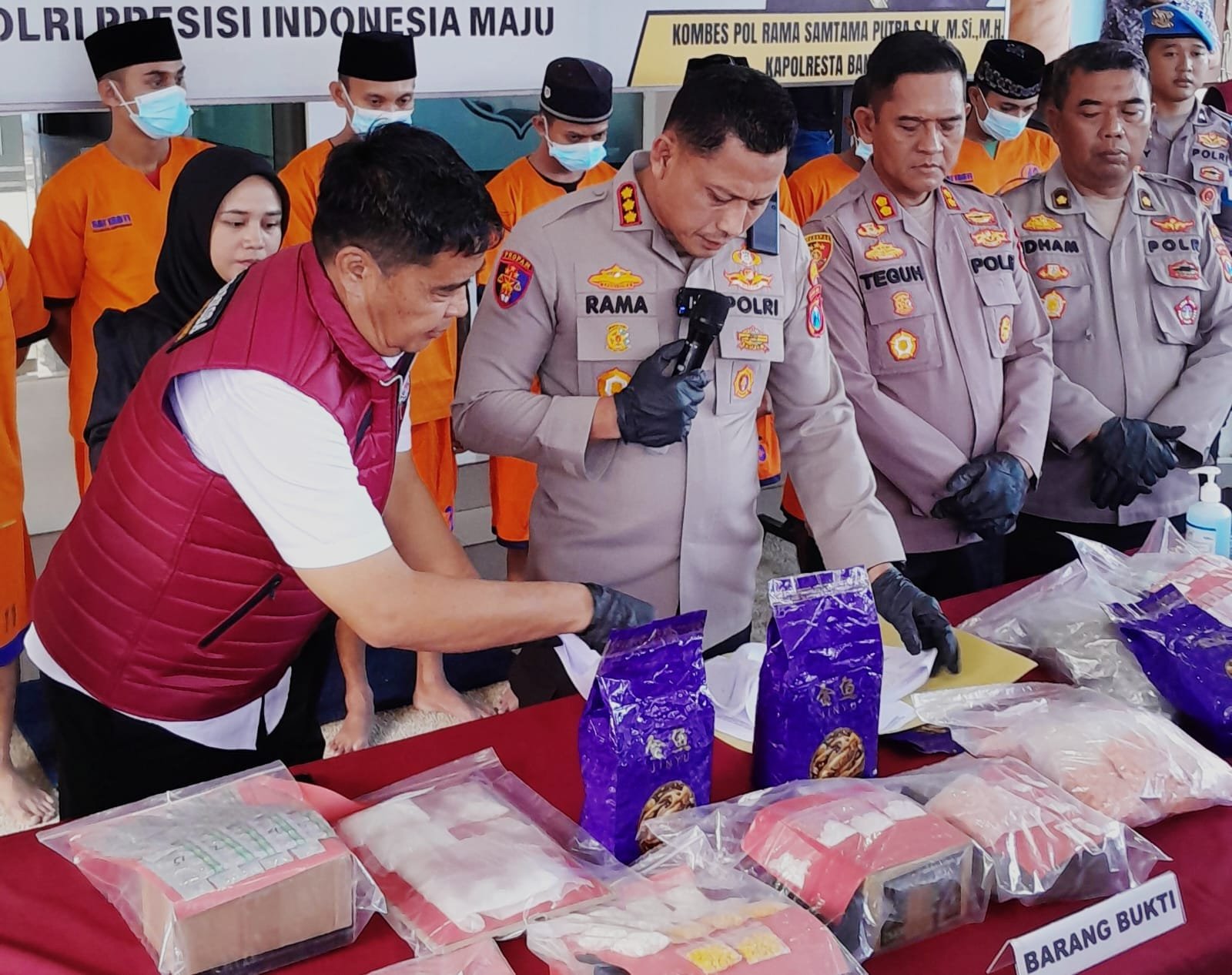 Selain menangkap pelaku, polisi berhasil mengamankan batang bukti sabu seberat 4.43,5 kilogram, pil.extasi 4726 butir, ganja 332,48 gram, pil daftar G 2552 butir, uang tunai Rp. 2.200.000., 4 unit motor, 14 hp, dan timbangan 11 unit.