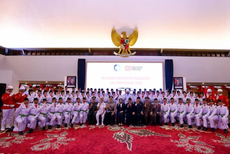 Sebanyak 75 anggota Paskibraka resmi dikukuhkan Bupati Banyuwangi Ipuk Fiestiandani di Pendopo Sabha Swagata Blambangan, Jumat malam (15/8/2025), usai menjalani pemusatan latihan selama 12 hari sejak 4 Agustus.