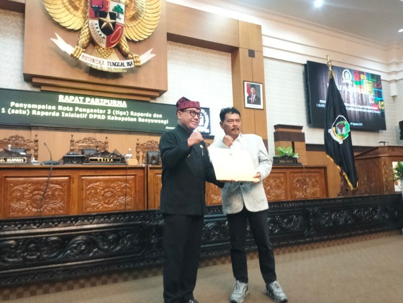 Wakil Bupati Banyuwangi, H. Mujiono, mewakili Bupati Banyuwangi Ipuk Fiestiandani menyampaikan tiga Raperda dari pemerintah daerah yaitu Raperda tentang Anggaran Pendapatan dan Belanja Daerah (APBD) Tahun Anggaran 2026, Raperda Rencana Pembangunan Industri Kabupaten 2025–2045, serta Raperda Inovasi Daerah.