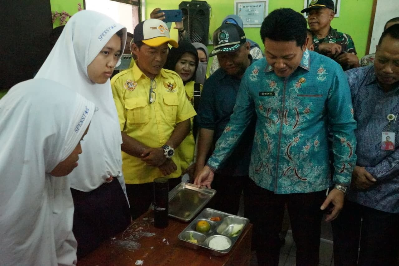 Sidoarjo, seblang.com – Bupati Sidoarjo, H. Subandi, bersama jajaran Forkopimda, melaksanakan inspeksi mendadak (sidak) program Makan Bergizi Gratis (MBG) di Kecamatan Tarik , Selasa (16/9). Sidak ini bertujuan untuk memastikan kelancaran, kualitas, dan ketepatan sasaran program unggulan pemerintah tersebut.