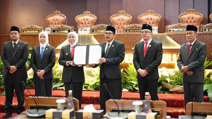 Persetujuan bersama ditandatangani Gubernur Jatim Khofifah Indar Parawansa dan pimpinan DPRD Jatim dalam rapat paripurna di Gedung DPRD Jatim, Senin (8/9/2025).