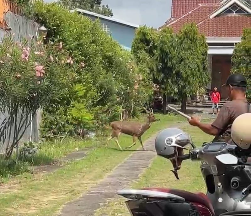 Keesokan harinya, rusa itu terlihat berada di halaman rumah warga di Jalan Basuki Rahmat, Kelurahan Singotrunan.