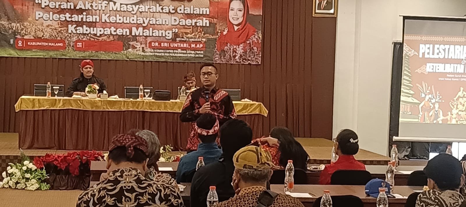 Malang, seblang.com – Anggota DPRD Kabupaten Malang dari Fraksi PDI Perjuangan Komisi I, Redam Guruh Krismantara, S.H., menegaskan pentingnya peran aktif masyarakat dalam menjaga sekaligus melestarikan kebudayaan di Kabupaten Malang.