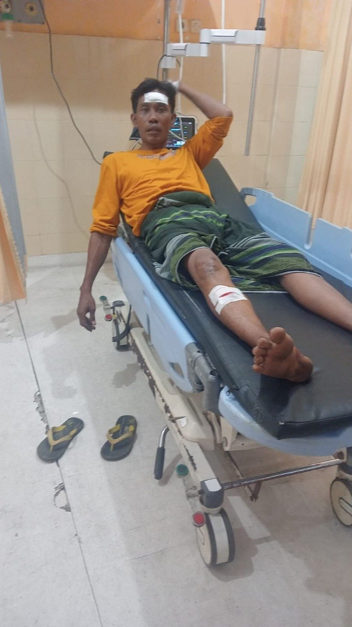 “Saya sengaja tidak tidur karena sering sekali kelapa hilang. Begitu lihat maling angkut kelapa ke motornya, saya langsung ambil kunci. Ternyata dia bawa celurit. Saya lari, tapi sarung saya nyangkut, jatuh, langsung dibacok di kaki. Pas dia mau tebas kepala, saya tahan pakai tangan sampai berdarah semua,” tutur Ramdan.