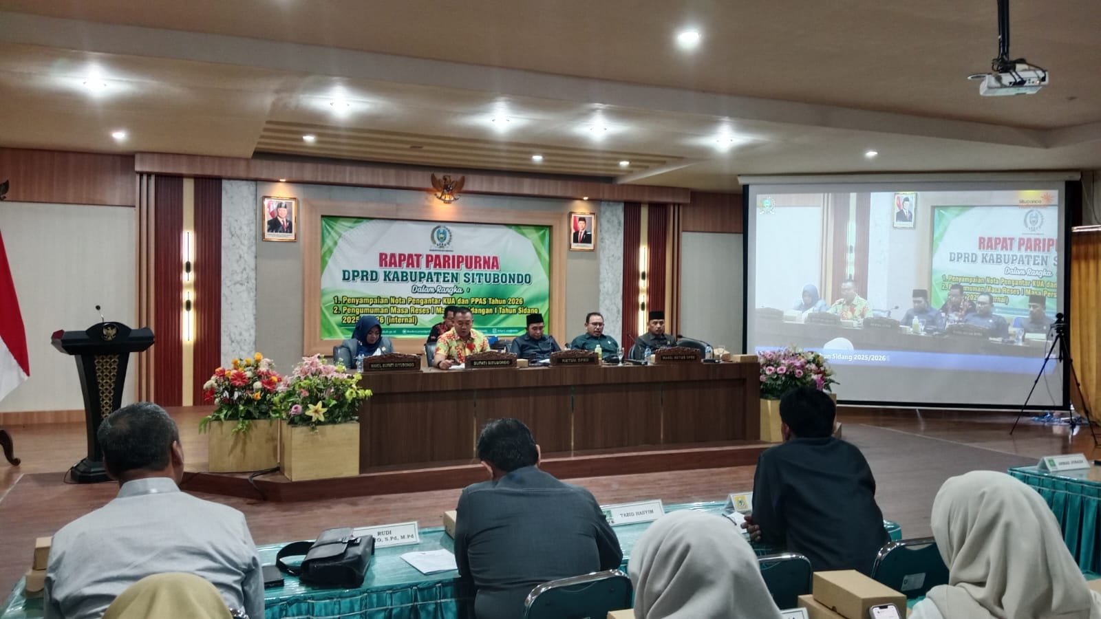 Situbondo, seblang.com – Dewan Perwakilan Rakyat Daerah (DPRD) Kabupaten Situbondo menggelar Rapat Paripurna penyampaian nota pengantar Rancangan Kebijakan Umum Anggaran dan Prioritas Plafon Anggaran Sementara (KUA-PPAS) Tahun Anggaran 2026. Rapat ini berlangsung di tengah tantangan fiskal signifikan akibat penurunan drastis dana transfer dari pemerintah pusat dan provinsi.