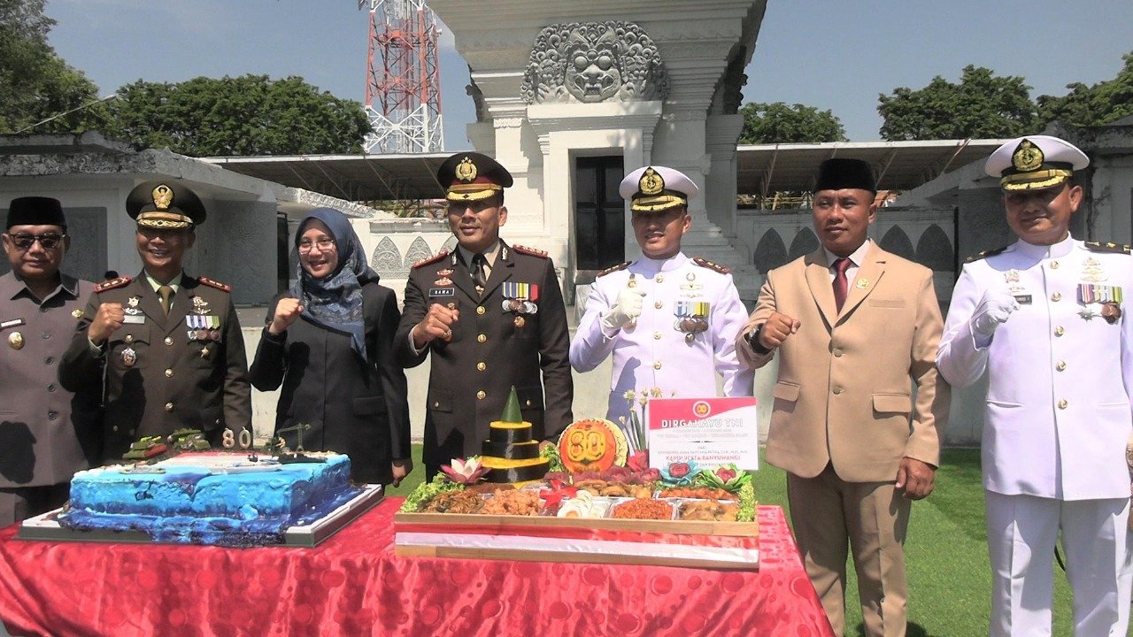Usai prosesi upacara, acara dilanjutkan dengan tasyakuran dan doa bersama, disusul pemotongan tumpeng dan kue ulang tahun sebagai simbol rasa syukur atas eksistensi TNI yang terus kokoh.