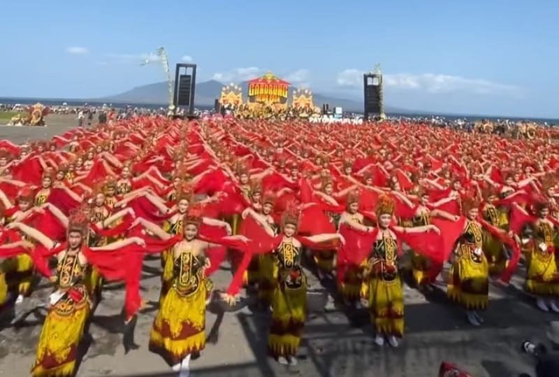 Banyuwangi, seblang.com — Pantai Marina Boom Banyuwangi akan kembali berubah menjadi lautan penari. Sebanyak 1.500 seniman bakal memeriahkan Festival Gandrung Sewu 2025 yang digelar pada 23–25 Oktober mendatang. Tahun ini, pertunjukan budaya kolosal tersebut mengusung tema “Selendang Sang Gandrung”, yang menggambarkan perjalanan hidup penari gandrung dari generasi ke generasi.