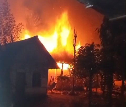 Banyuwangi, seblang.com — Kobaran api melalap bangunan bekas kantor unit desa (KUD) di Dusun Badolan, Desa Bajulmati, Kecamatan Wongsorejo, Kabupaten Banyuwangi, Rabu (8/10/2025) petang. Bangunan yang kini ditempati seorang warga lanjut usia itu ludes dilalap api. Diduga, kebakaran dipicu kebocoran gas LPG yang menyambar nyala kompor.
