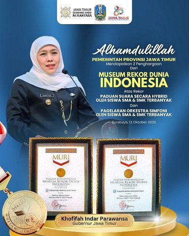 Dua penghargaan tersebut bukan sekadar rekor, melainkan simbol semangat dan perwujudan filosofi kerja JATIM BISA (Berdaya, Inklusif, Sinergis, dan Adaptif) yang digelorakan Gubernur Jawa Timur, Khofifah Indar Parawansa.