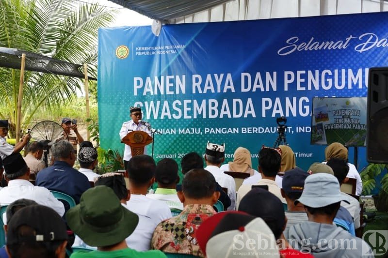 Banyuwangi, seblang.com – Kabupaten Banyuwangi menjadi salah satu daerah penyangga utama keberhasilan program swasembada pangan nasional yang diumumkan Presiden Prabowo Subianto pada tahun pertama pemerintahannya. Sepanjang 2025, daerah yang dikenal sebagai lumbung pangan nasional ini mencatat surplus ratusan ribu ton beras dan jagung.