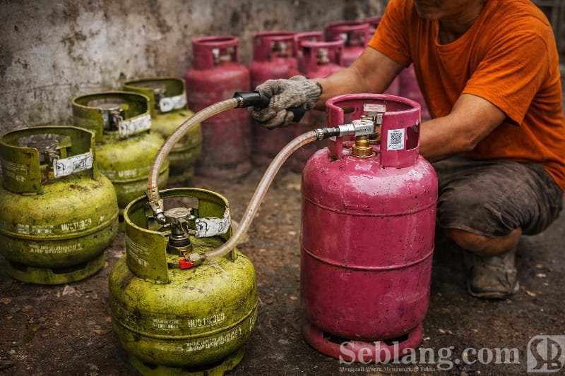 Banyuwangi, seblang.com – Permainan kotor di balik langkanya LPG 3 kilogram akhirnya terbongkar. Gas melon “disedot”, dipindah, lalu disulap jadi tabung non-subsidi. Untung besar. Rakyat kecil kebagian susah.