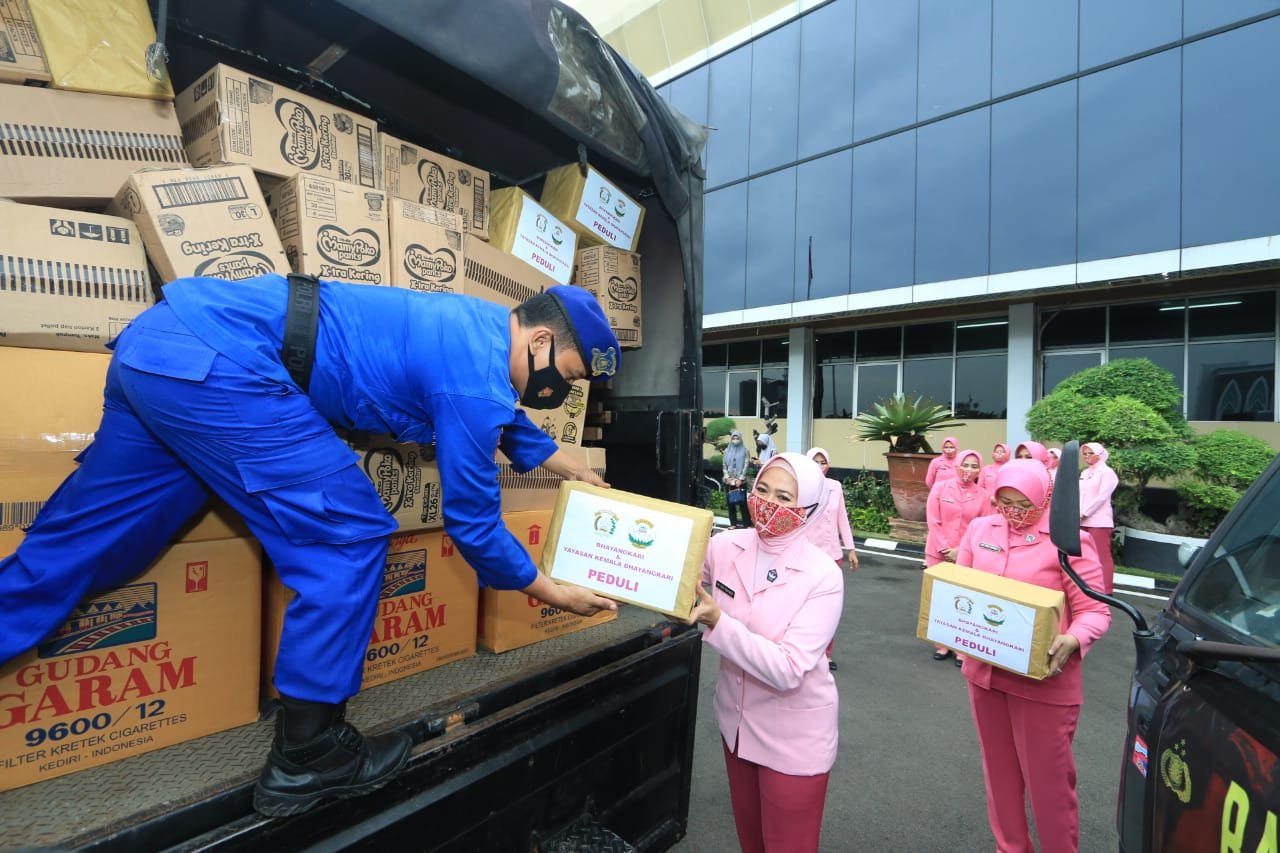 Pemberangkatan sembako ke Cianjur, diberangkatkan secara langsung Kapolda Jatim Irjen Pol Toni Harmanto, didampingi Waka Polda Jatim Brigjen Pol Slamet Hadi Supaptoyo, serta pejabat utama (PJU) polda jatim.