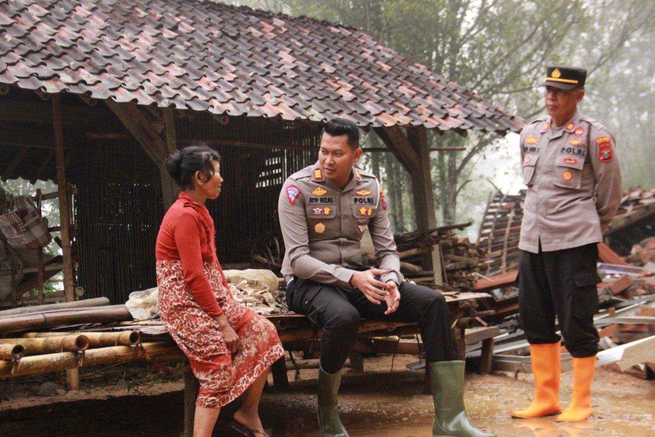 Lanjut Edi, Salah satu warga terdampak tanah longsor yang diberikan bantuan adalah Bu Suratin. “Rumah Bu suratin rusak total akibat tertimbun longsoran tanah, dia juga seorang janda ditinggal suaminya meninggal dunia karena sakit dan saat ini hidup dengan 1 orang anak serta menantunya,” jelas Kompol Edi Suyono.