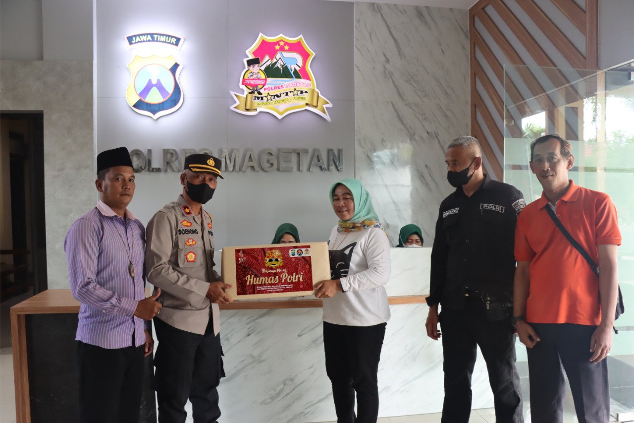 Kegiatan penyaluran bantuan bekerja sama dengan awak media pokja Polres Magetan bertepatan dengan hari jadi Humas Polri ke 71.
