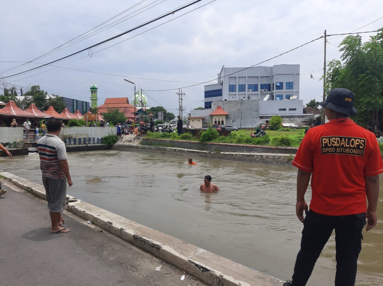 Selanjutnya, mendapat informasi kejadian tersebut, Pusdalops BPBD Situbondo bersama anggota Tagana, Satpol PP , Dinas Pengairan , Polsek Kota , Koramil serta warga sekitar melakukan pencarian dengan menyusuri sungai irigasi tersebut.