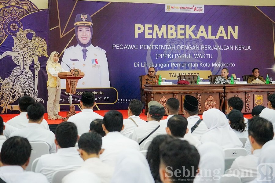 Kota Mojokerto, seblang.com – Sebanyak 1.116 Pegawai Pemerintah dengan Perjanjian Kerja (PPPK) Paruh Waktu di lingkungan Pemerintah Kota Mojokerto mengikuti kegiatan pembekalan dalam rangka penguatan peran dan kapasitas sebagai aparatur sipil negara (ASN). Kegiatan tersebut dilaksanakan di Mall Pelayanan Publik (MPP) Gajah Mada Kota Mojokerto, Selasa (20/1).