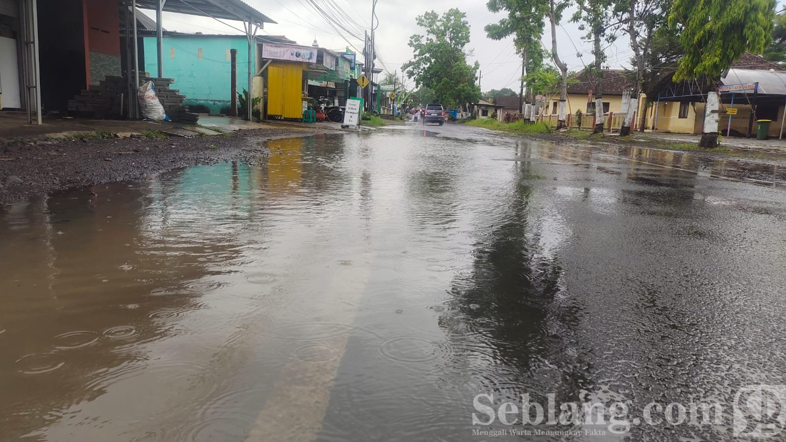 Banyuwangi, seblang.com — Hujan deras yang mengguyur wilayah Kabupaten Banyuwangi menyebabkan sejumlah ruas jalan di Kecamatan Genteng tergenang air, Selasa (4/11/2025). Curah hujan yang tinggi membuat saluran air tidak mampu menampung debit air yang meningkat drastis.