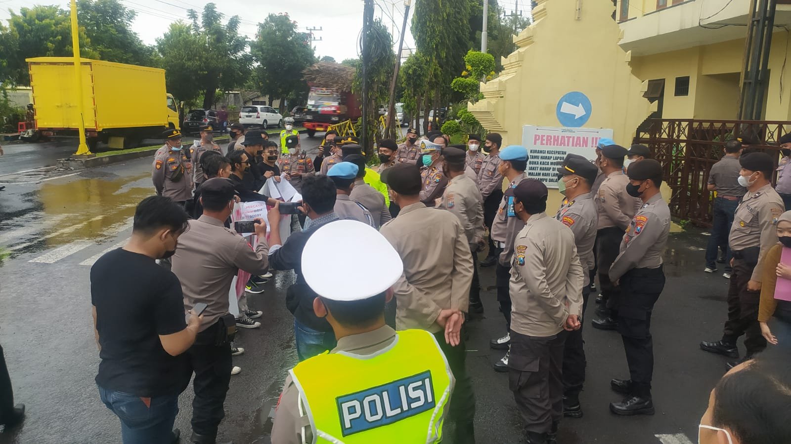 Menanggapi hal tersebut sejumlah mahasiswa yang menamakan diri Aliansi Mahasiswa Banyuwangi mendatangi Polresta Banyuwangi dengan menggelar aksi bisu sembari membentangkan spanduk bertuliskan “Hentikan Kriminalisasi Mahasiswa”, Selasa (20/9/2022).