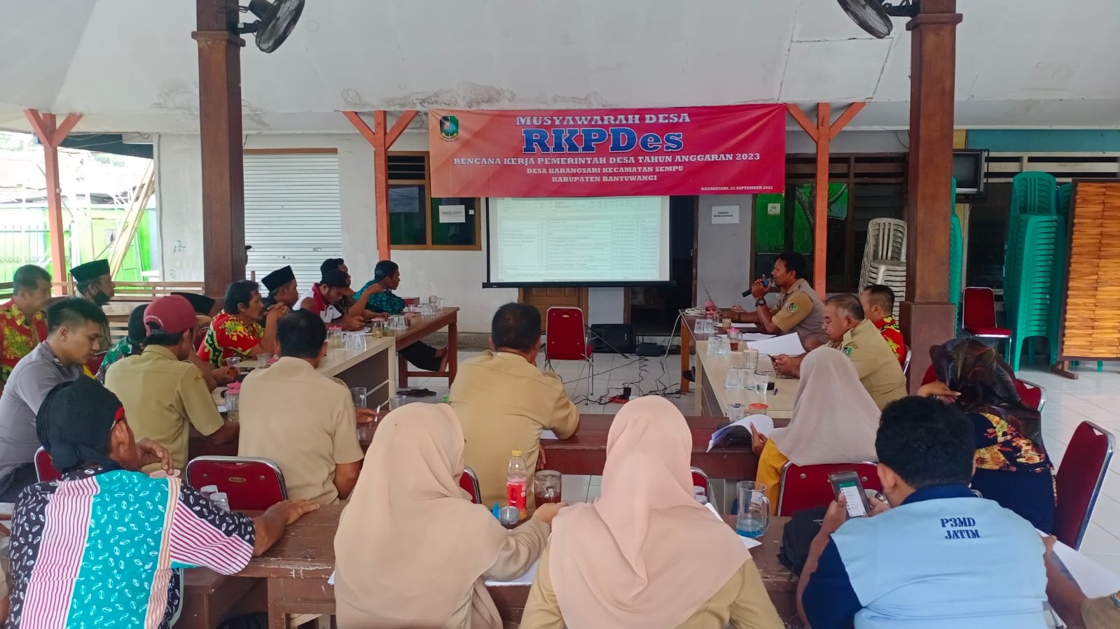 Banyuwangi, seblang.com – Ketua BPD dan LPMD Desa Karangsari Kecamatan Sempu Kabupaten Banyuwangi bekerja sama dengan Pemerintah Desa Karangsari memfasilitasi pelaksanaan Musyawarah Desa yang dilaksanakan pada Selasa ( 27/9/22)