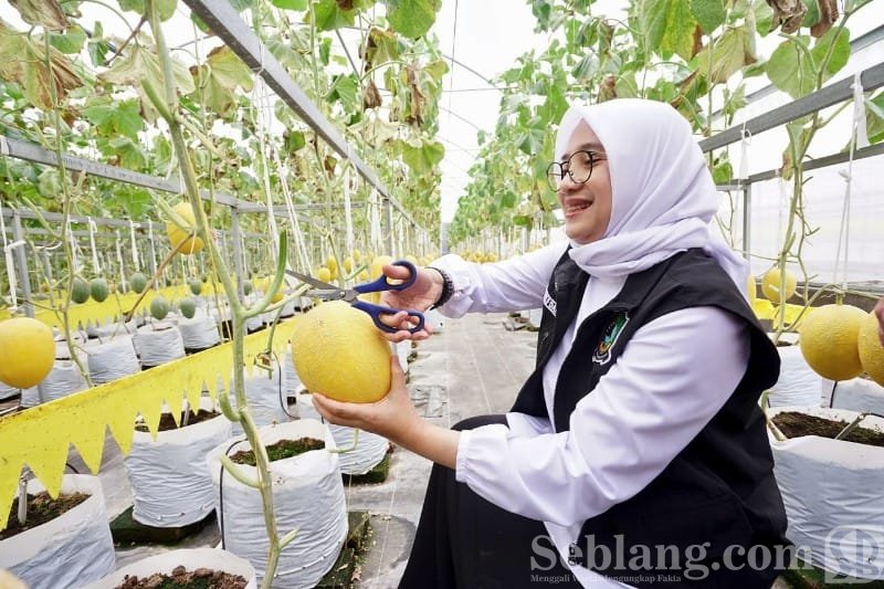 Kunjungan tersebut menjadi bagian dari upaya mendorong penguatan sektor pertanian sebagai penopang ekonomi daerah. Di lokasi, Ipuk melihat proses budidaya sekaligus ikut memanen melon di dalam greenhouse.