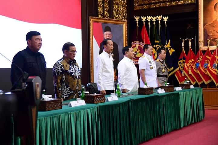 “Saya minta Kementerian Pertahanan harus bisa menjadi orkestrator, bisa mengorkestrasi dari informasi-informasi intelijen pertahanan dan keamanan yang kita punya di mana-mana,” ujar Presiden Joko Widodo dalam arahannya pada Rapat Pimpinan (Rapim) Kementerian Pertahanan (Kemhan) Tahun 2023 di Aula Bhinneka Tunggal Ika, Kementerian Pertahanan, Jakarta, pada Rabu, 18 Januari 2023.