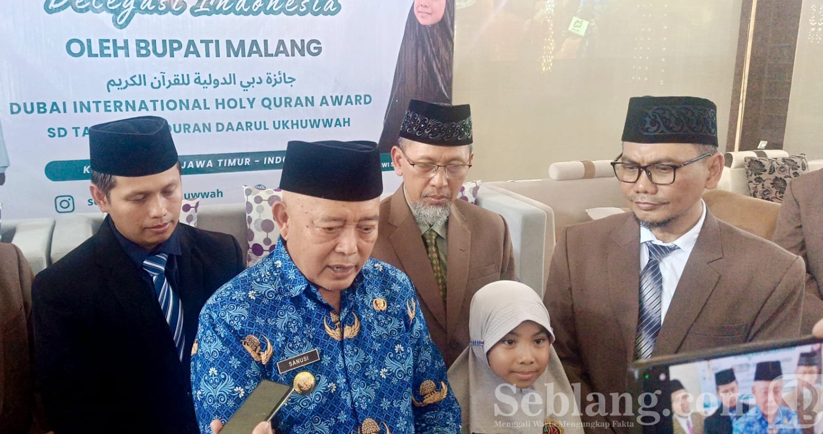 Malang, seblang.com – Bupati Malang, Sanusi, secara resmi melepas keberangkatan santri asal Kabupaten Malang yang akan mewakili Indonesia dalam ajang Festival Tahfidzul Qur’an tingkat internasional di Dubai, Qatar. Prosesi pelepasan berlangsung khidmat di Pondok Pesantren Daarul Ukhuwwah, Kecamatan Pakis, Rabu (18/2/2026).