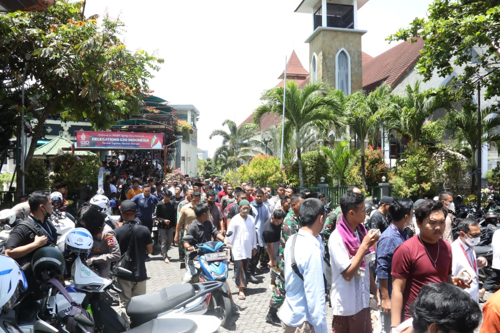 Bali, seblang.com – TNI-Polri melaksanakan salat jumat bersama dengan masyarakat di Masjid Agung Ibnu Batutah di Bali. Dalam pelaksanaan salat jumat ini, TNI-Polri mengajak masyarakat ikut menyukseskan penyelenggaraan puncak forum Konferensi Tingkat Tinggi (KTT) G20 pada 15-16 November 2022.