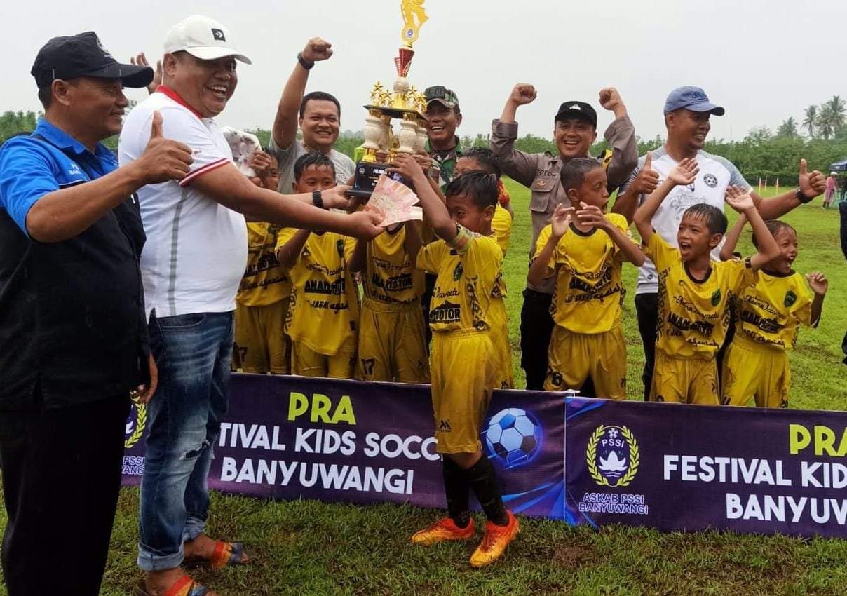 Banyuwangi, seblang.com – Askab PSSI Banyuwangi menggelar Pra Festival Kids Soccer. Kegiatan perdana ini digelar di dua tempat yakni di Lapangan Diponegoro Kertosari Bayuwangi, dan Lapangan Tunggul Wulung Desa Sembulung, Kecamatan Cluring, Sabtu (26/11/2022).