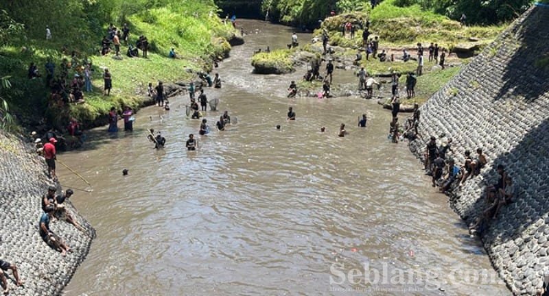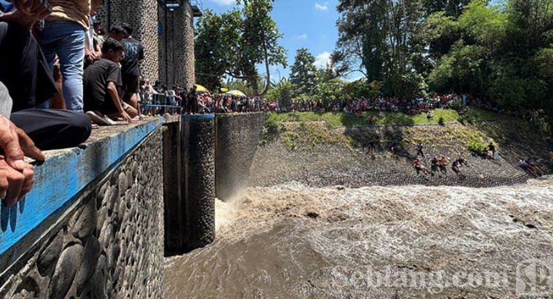 Meski menjadi hiburan tahunan masyarakat, petugas mengingatkan warga agar berhati-hati karena dasar dam licin dan kedalaman air tidak merata.
