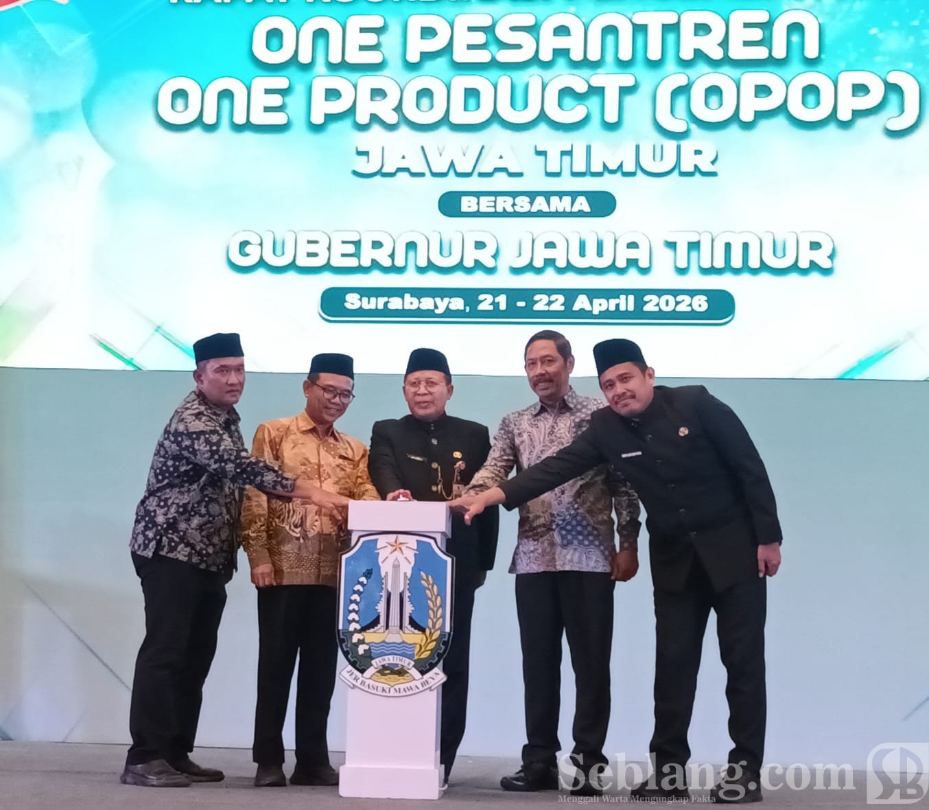 Surabaya, seblang.com – Pemerintah Provinsi Jawa Timur terus mendorong penguatan ekonomi berbasis pesantren melalui Rapat Koordinasi (Rakor) Pengembangan One Pesantren One Product (OPOP) Jawa Timur Tahun 2026. Kegiatan ini digelar di Hotel Mercure Surabaya Grand Mirama, Selasa (21/4/2026).