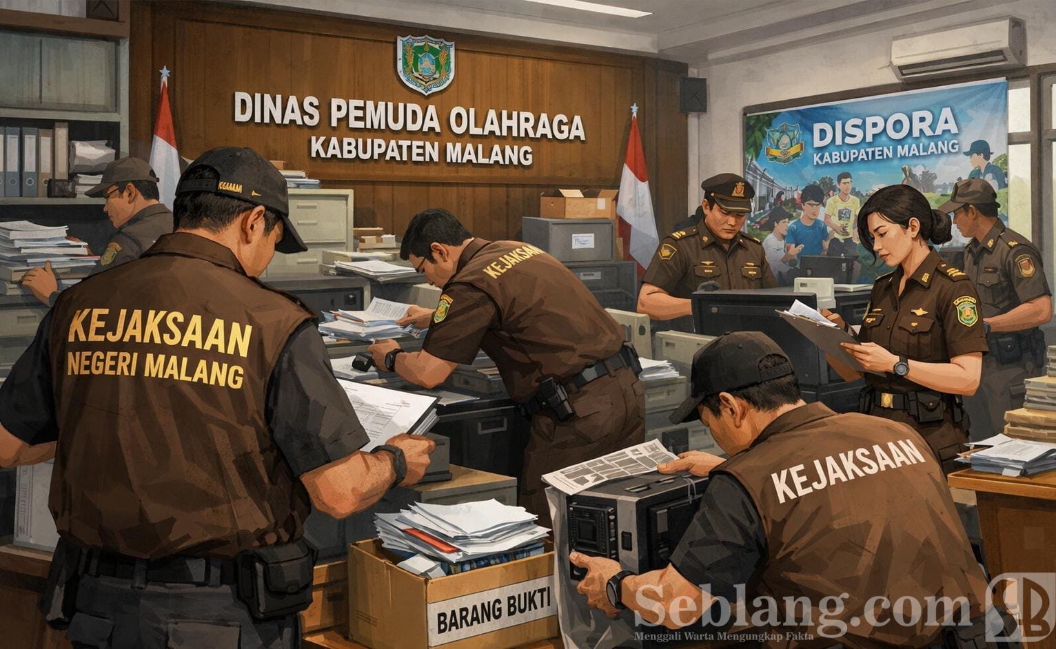 Malang, seblang.com – Kasus dugaan penyelewengan dana hibah Komite Olahraga Nasional Indonesia (KONI) Kabupaten Malang tahun anggaran 2022–2023 terus bergulir dan menunjukkan eskalasi serius. Penanganan perkara ini memasuki fase krusial, ditandai dengan penggeledahan Kantor Dinas Pemuda dan Olahraga (Dispora) Kabupaten Malang oleh tim Kejaksaan Negeri (Kejari) Kabupaten Malang.