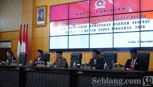 Kota Blitar, seblang.com – Dewan Perwakilan Rakyat Daerah (DPRD) Kota Blitar menggelar Rapat Paripurna dengan agenda Penyampaian Penjelasan Wali Kota Blitar atas Rancangan Peraturan Daerah tentang Anggaran Pendapatan dan Belanja Daerah (APBD) Kota Blitar Tahun Anggaran 2026, Senin (3/11/2025). Rapat berlangsung di Ruang Rapat Paripurna DPRD Kota Blitar dan dipimpin langsung oleh Ketua DPRD Kota Blitar, Syahrul Alim.
