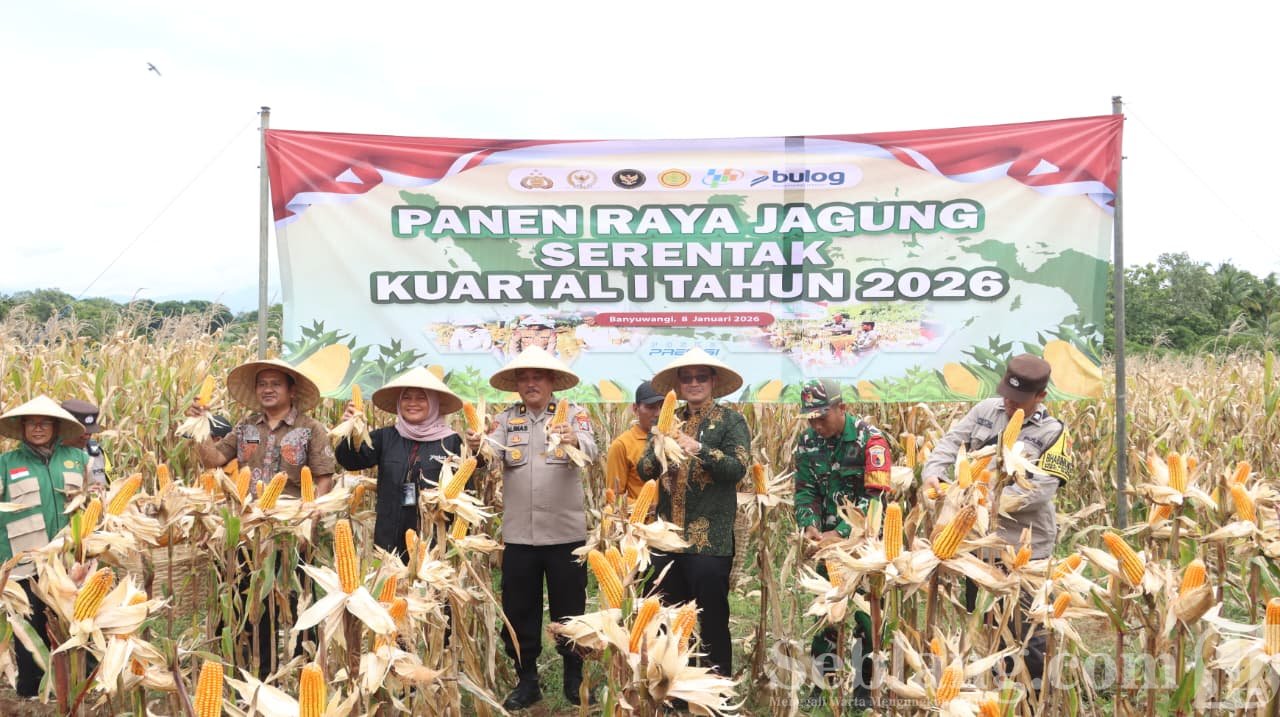 Banyuwangi, seblang.com – Dalam rangka mendukung program ketahanan pangan nasional yang dicanangkan pemerintah serta peningkatan produksi jagung nasional, Polresta Banyuwangi melaksanakan Panen Raya Jagung Serentak Kuartal I Tahun 2026.