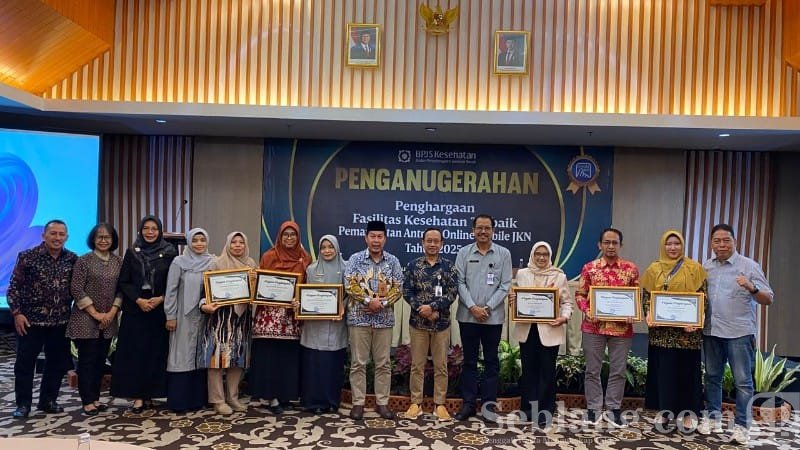 Banyuwangi, seblang.com – BPJS Kesehatan Kantor Cabang Banyuwangi memberikan Penghargaan Fasilitas Kesehatan Terbaik dalam Pemanfaatan Antrean Online Mobile JKN Tahun 2025 kepada enam fasilitas kesehatan. Penghargaan ini diberikan sebagai bentuk dorongan terhadap transformasi digital layanan kesehatan guna meningkatkan mutu pelayanan Program Jaminan Kesehatan Nasional (JKN).