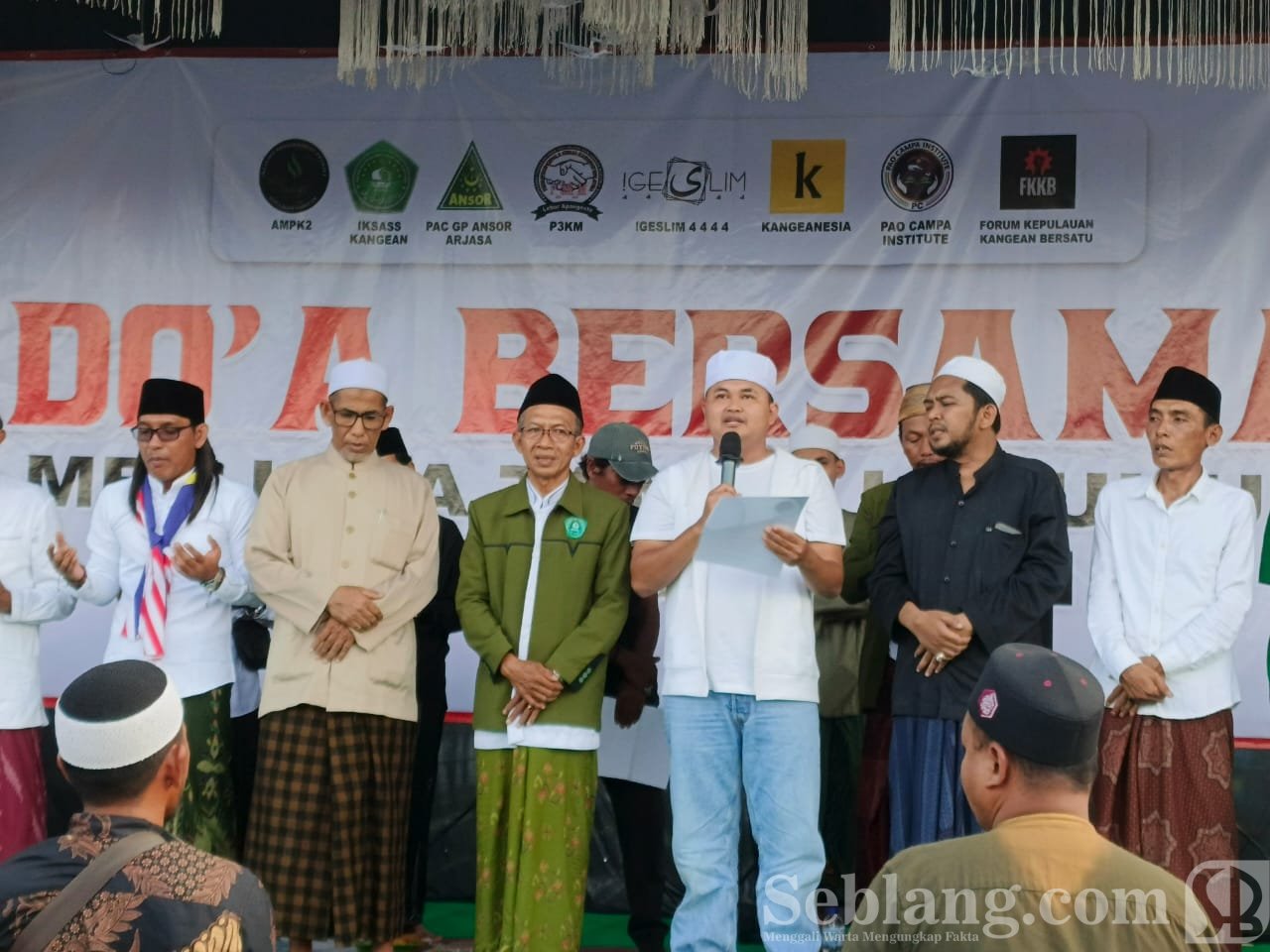 Doa bersama dihadiri lintas tokoh—tokoh agama, masyarakat, nelayan, pemuda, hingga ibu-ibu—yang memanjatkan doa agar Kepulauan Kangean tetap aman, lestari, dan terhindar dari ancaman eksploitasi.