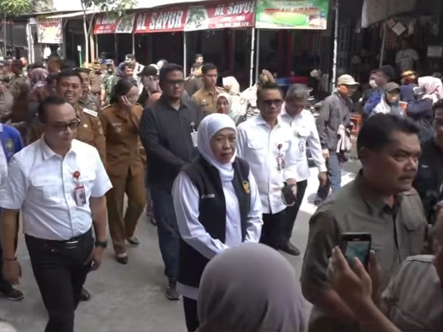 Kota Blitar, seblang.com – Gubernur Jawa Timur, Khofifah Indar Parawansa, meninjau Pasar Pon Kota Blitar pada Selasa (26/8/2025) untuk memastikan ketersediaan dan kestabilan harga bahan pangan pokok, terutama beras.