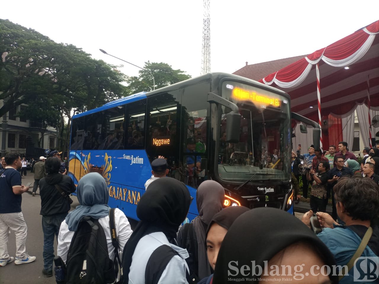 “Saya berharap konektivitas dan mobilitas masyarakat semakin aman, nyaman, dan terjangkau dengan hadirnya TransJatim di Malang Raya,” tutur Khofifah.
