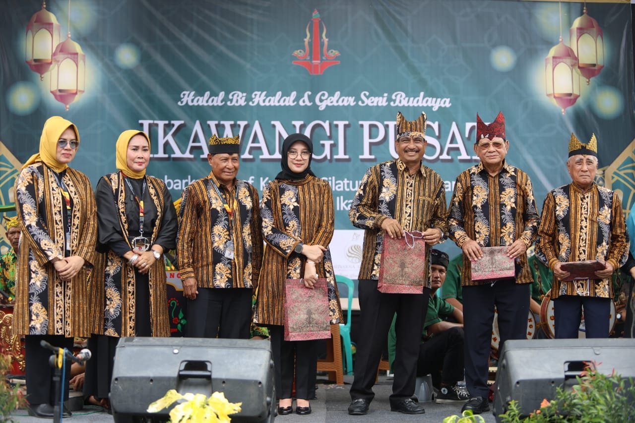 Ketua Ikawangi Pusat Mayjen (Purn) Rusdi Maksum menyampaikan amanat para sesepuh Ikawangi kepada Bupati Banyuwangi Ipuk Fiestiandani yang hadir langsung dalam kegiatan tersebut.