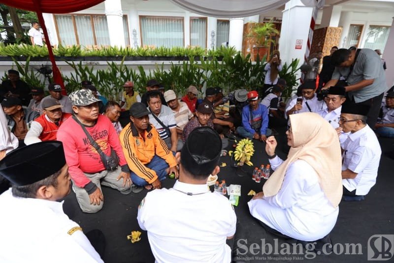 Banyuwangi, seblang.com — Hari pertama masuk kerja setelah libur Lebaran dimanfaatkan Bupati Banyuwangi Ipuk Fiestiandani untuk bersilaturahmi dengan para pengemudi transportasi tradisional dan daring, Rabu (25/3/2026). Kegiatan itu digelar di halaman Kantor Bupati Banyuwangi.