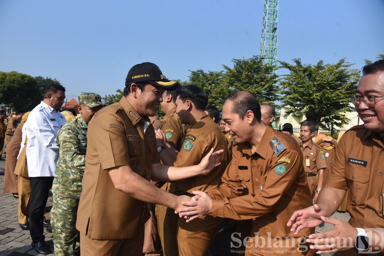 Sidoarjo, seblang.com – Bupati Sidoarjo, Subandi, memimpin apel pagi yang dirangkaikan dengan kegiatan halalbihalal bersama seluruh Aparatur Sipil Negara (ASN) di lingkungan Pemerintah Kabupaten Sidoarjo. Kegiatan tersebut digelar di area parkir timur GOR Delta, Senin (30/3/2026).