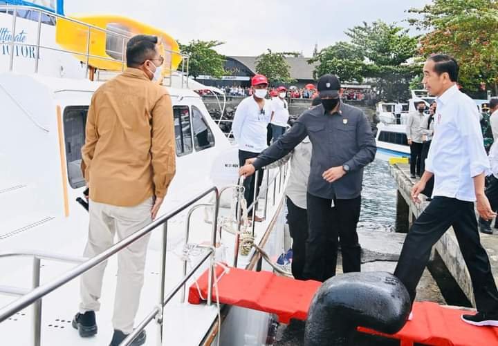 Manado, seblang.com – Hari ketiga kunjungan kerjanya di Provinsi Sulawesi Utara (Sulut), Jumat, 20 Januari 2023, Presiden Joko Widodo diagendakan untuk mengunjungi Kawasan Wisata Bunaken. Presiden bersama rombongan menuju Dermaga Pulau Bunaken menggunakan Kapal Motor Ultimate Victory dan berangkat dari Dermaga Mega Mas, Kota Manado pada pukul 08.20 WITA.