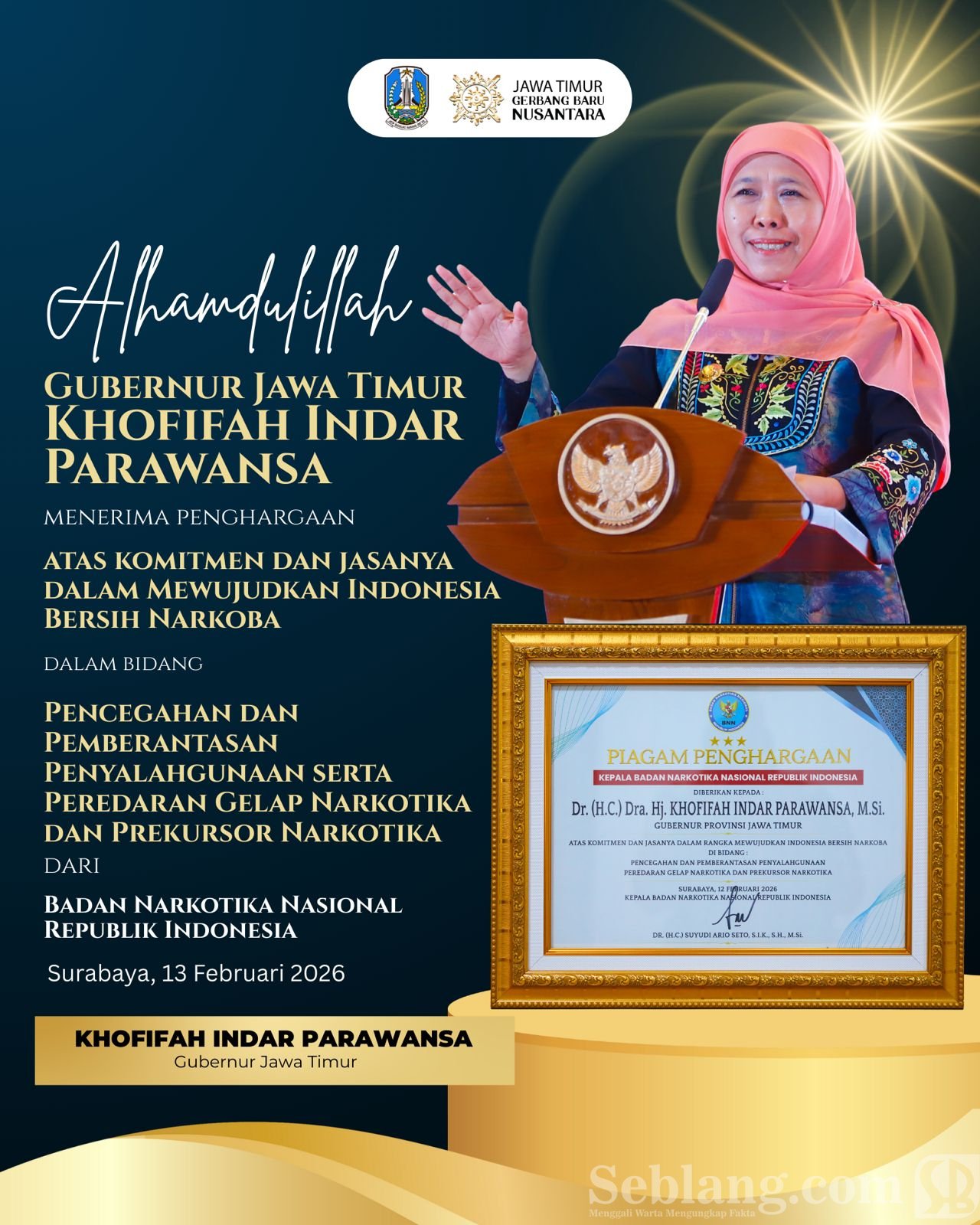 Gubernur Khofifah menegaskan, penghargaan tersebut menjadi penguat komitmen Jawa Timur sebagai wilayah strategis nasional yang harus berdiri di garis terdepan dalam melindungi Generasi Emas 2045 dari ancaman narkotika.