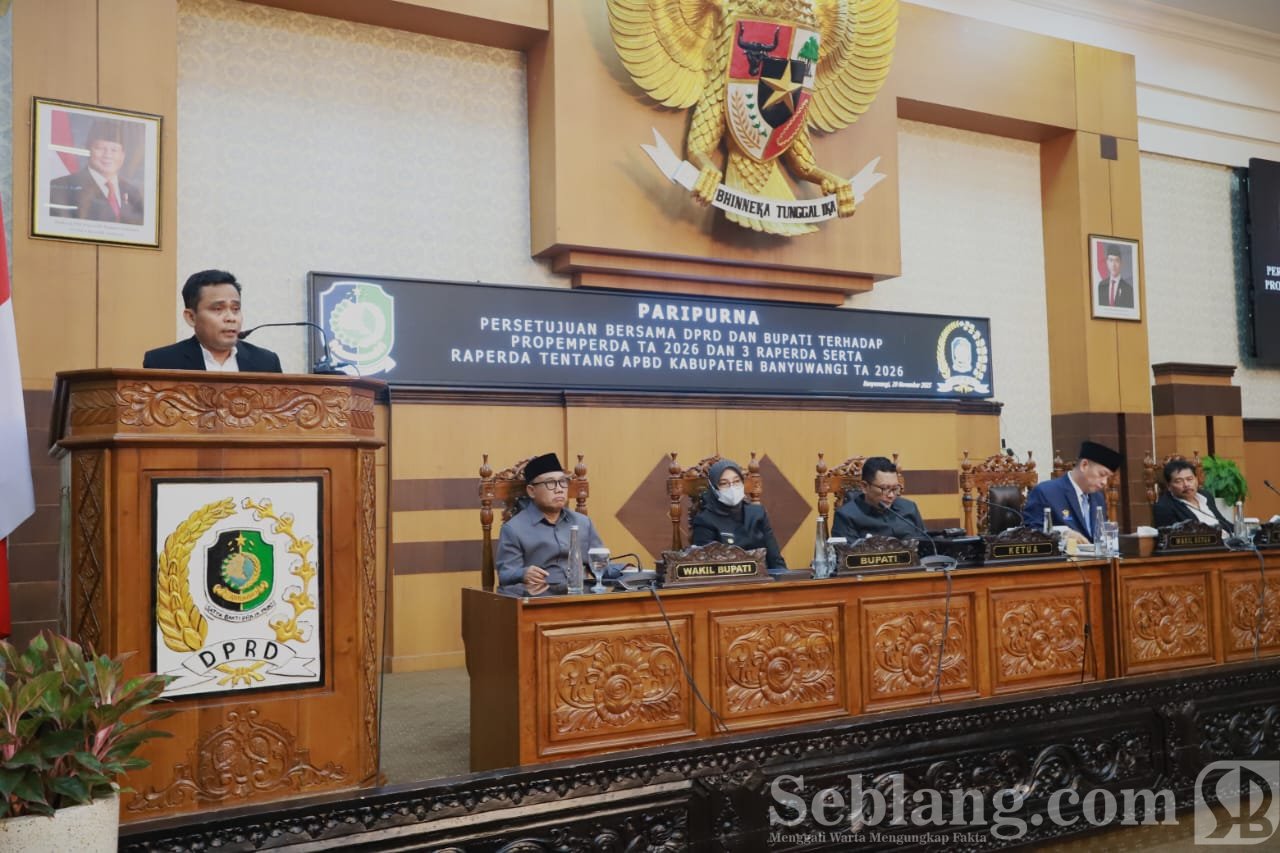 Banyuwangi, seblang.com – Menjelang akhir tahun 2025, Dewan Perwakilan Rakyat Daerah (DPRD) Kabupaten Banyuwangi resmi mengesahkan Rancangan Peraturan Daerah (Raperda) Pembinaan Ideologi Pancasila (PIP) menjadi Peraturan Daerah. Pengesahan dilakukan dalam rapat paripurna yang dipimpin langsung oleh Ketua DPRD Banyuwangi, I Made Cahyana Negara, di Ruang Rapat Paripurna DPRD Banyuwangi, Sabtu (29/11/2025) malam.