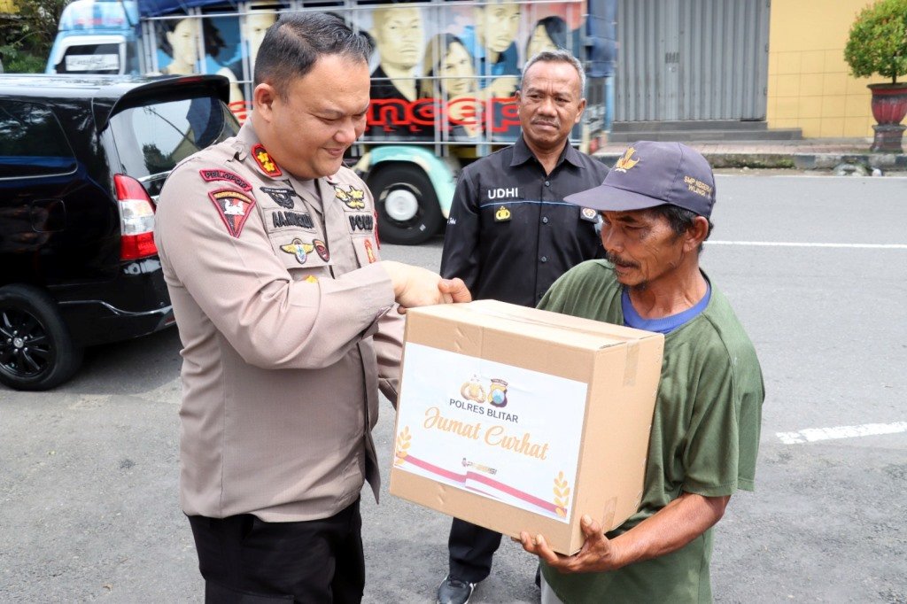Kapolres Blitar AKBP Anhar Arlia Rangkuti S.I.K. melalui Kasi Humas Polres Blitar Iptu Udiyono mengatakan di Hari Yang Berkah ini ia bersama anggota Polres Blitar membagikan sejumlah paket sembako kepada masyarakat yang membutuhkan seperti pemulung, para petani dan pengendara ojek sekitar.