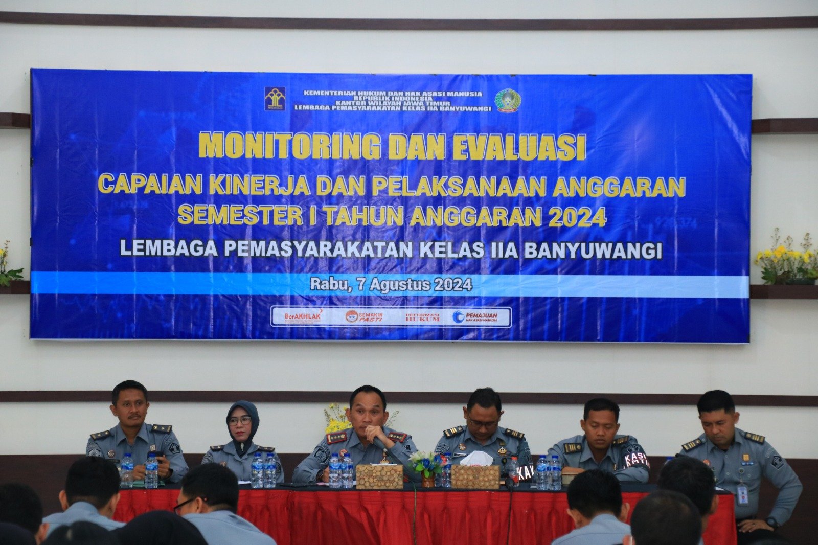 Banyuwangi, seblang.com – Lembaga Pemasyarakatan (Lapas) Kelas IIA Banyuwangi menggelear rapat dinas dalam rangka monitoring dan evaluasi (monev) capaian kinerja pada semester I tahun 2024, Rabu (7/8).