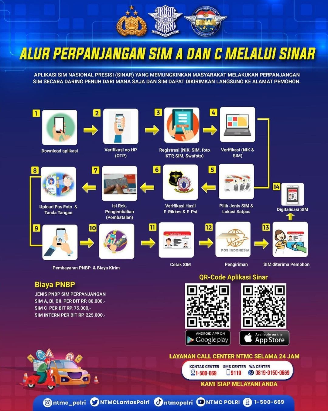 “Terkait hal tersebut, saya menghimbau masyarakat yang akan mengurus perpanjangan SIM untuk memanfaatkan aplikasi SINAR,” tutur dia, seperti dilihat seblang.com dari akun Instagram @listyosigitprabowo, Senin (24/10/2022).